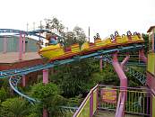 Sehr kompakte Bahn, die teilweise über Hallendächer hinweg fährt, um sich schließlich in urwaldähnliches dichtes Grün zu stürzen. Die dabei durchfahrene Helix ist nicht ohne! Poppige Farben und ein sympathisch gestalteter Zug bilden einen angenehmen Kontrast zur Natur.