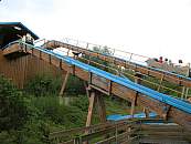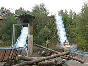 Mit hölzernen Umbauten sehr hübsch dekoriertes Serienmodell mit Hügelchen im kleinen Schuss. Gegenüber anderen Wild River II geringfügig verbreitert.