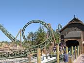 Gegenüber der Holzachterbahn auf der anderen Seite des Parkplatzes wurde dieses sehr interessante neue Konzept realisiert: Aus dem aufwendig gestalteten Bahnhof geht es direkt etwas bergab, um bereits mit Schwung in die Abschussstrecke einzufahren. Nahtlos werden die Einzelwagen in zwei Sekunden von 0 auf 80 km/h beschleunigt und auf den Tophat katapultiert. Darauf folgen neben einem Airtime-Hügel und einigen Steilkurven auch noch zwei Inversionen, eine Zero-G-Roll und ein Corkscrew. Die Sitze sind dabei so angeordnet, dass die hinteren Plätze weiter außen liegen als die vorderen, um die Sicht nach vorne zu verbessern.