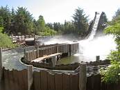 Klassische Wildwasserbahn mit Wild-West-ähnlicher Gestaltung. Das Layout ist dadurch interessant, dass alle drei Schussfahrten übereinander liegen. Der hintere Teil führt wiederum kaum einsehbar durch den Wald.