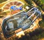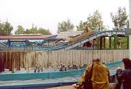 Kundenspezifische Anlage. Der Standard-Wild-River-2 wurde durch einen Mini-Schuss am vorderen Rand ergänzt und anders angeordnet. Ergibt zusammen mit der Rückwand ein schönes Bild. Ansonsten aber keine Gestaltung. Interessant: Der Mini-Schuss macht nasser als der Buckelschuss.