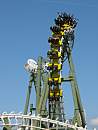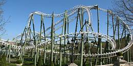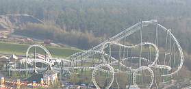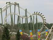 Die erste Anlage ihrer Art in Deutschland, wenn auch weltweit fast überall anzutreffen. Hier geht mal richtig die Post ab. Wie sich im Kopfstand der Himmel seitlich wegdreht, muß man erlebt haben. Insgesamt geht es fünfmal kopfüber: Roll-Over, Sidewinder, Double Spin. In der hinteren Zughälfte sehr angenehmes Fahrgefühl. Ohne Zwischenbremse, deshalb sehr schnelle, jedoch auch sehr kurze Fahrt. Mit drei Zügen ließe sich wohl die Kapazität wesentlich steigern.