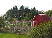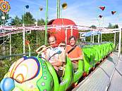 Klassische kleine Wurmachterbahn. Für Kleinkinder nett, aber für die Größeren dann doch etwas zu gemächlich. Trotz der individuellen Folien passt sie leider nicht so recht zum Parkambiente.