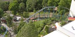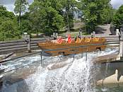 In die hinterste Ecke des Parks wurde diese Wasserachterbahn hineingequetscht, die ein bißchen mit Poseidon im Europa-Park verglichen werden kann. Nach dem Aufzug folgen auch hier einige Steilkurven, ehe es mit Schwung ins Wasser geht. Leider sitzt man in den engen Booten recht unbequem und auch der Kontakt mit dem Wasser geschieht vor allem durch seitlich hereinschwappende Wellen und nicht etwa durch hochspritzende Gischt.