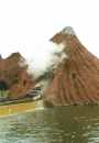In großen Booten gehts mit Lautsprecher-Untermalung ins Innere eines Vulkans. Dort gibts neben einem Schuss und einer Rückwärtsfahrt (leider ohne Schuss) jede Menge Animatronics und Spezialeffekte. Der große Schuss am Ende führt wieder ans Tageslicht und macht richtig nass.
