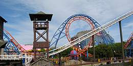 Ungewöhnliche Konstruktion, seinerzeit freilich die erste Loopingbahn in Großbritannien. Von einer erhöhten Plattform aus geht es bergab, in den Looping hinein und am anderen Ende wieder bergauf auf eine zweite Plattform. Danach kommt das Gleiche rückwärts. Das Tragwerk kann noch immer gefallen, in Punkto Fahrspaß ist die Entwicklung jedoch erheblich fortgeschritten.
