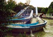 Bewährtes Serienmodell mit Hügelchen im kleinen Schuss. Vorne über einen großen See gebaut, die Warteschlange und der Bahnhof wurden passend zur Westernstadt mit einfachen Holzbauten gestaltet.