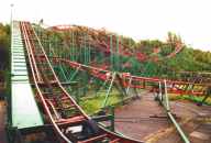 Eine Bahn mit Geschichte: Vermutlich mal in Deutschland auf der Reise, irgendwie in das Adventureland in Des Moines/USA gekommen, später im Avonturenpark in Holland als Dunkelachterbahn "Kanalratte" umdekoriert, 1996 dann in der Spielerei aufgebaut. Und die Geschichte geht weiter: Im Winter 1999/2000 wurde der Flitzer in den Forellenhof Plohn (Vogtland) umgesetzt. Der Typenname "Flitzer" paßt perfekt: Klein, wendig, rasant. Der kleine Bruder des Tivoli-Coasters.