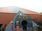 Eigentlich können Dunkelachterbahn ganz interessant sein. Hier allerdings scheint so einiges schief gegangen zu sein und was vorhanden ist, ist zu wenig, um von Fahrspaß reden zu können: Die Züge fahren rückwärts und auch nicht besonders schnell, dafür bleiben sie an den Blockbremsen jeweils stehen und rollen ein Stück zurück, ehe es wieder weiter geht. Was das bedeuten soll, bleibt unklar, denn nachdem die Schienen und die Halle fertig waren, hat angeblich das Geld für die erklärenden Spezialeffekte gefehlt.