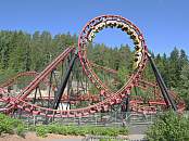 Variante des Wirbelwinds mit einem Korkenzieher und einem Looping statt zwei Korkenziehern. Leider steht die Bahn nackt da und die Fahrt ist so schmerzhaft und ruckelig, dass sie eigentlich unfahrbar ist.