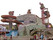 Auf sehr engem Raum wurde hier jede Menge Stromschnellenfahrt untergebracht: Der Bahnhof ist als Felsenhöhle getarnt, dann geht es mit einem Vertikalaufzug nach ganz oben, wo die wilde Fahrt beginnt: Heftig drehend geht es durch zahlreiche Kurven und mit mehreren Richtungswechseln talwärts, wobei sich auch die Drehrichtung der mit LEDs beleuchteten Boote ändert. Dabei kommt man auch an vielen Dekorationselementen vorbei, ehe man mit einer kleinen Schussfahrt und einigen Spritzern wieder zum Ausstieg gelangt. So macht eine Stromschnellenfahrt Spaß!